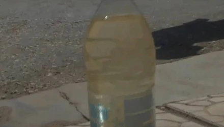 Σκουρόχρωμο νερό βγαίνει από τις βρύσες των σπιτιών στην Αρετή Λαγκαδά, στη Θεσσαλονίκη.