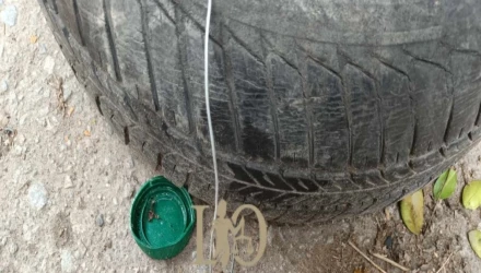 Όπως φαίνεται και στη φωτογραφία του Law&Order, ο πολυμήχανος Λαρισαίος πήρε μία βίδα και την κάρφωσε στον δρόμο.