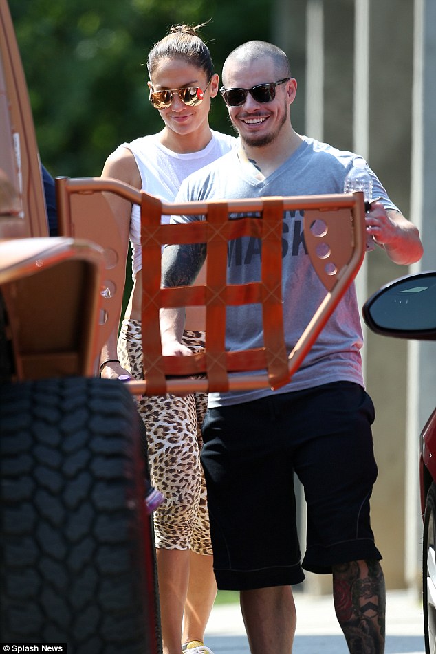 Η Λόπεζ φορούσε ένα λεοπάρ κολάν και ένα λευκό τοπ μαζί με αθλητικά παπούτσια.