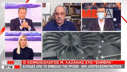 Για τα πλεονεκτήματα και τα μειονεκτήματα του εμβολίου της Pfizer κατά του κορωνοϊού μίλησε ο διευθυντής - Υπεύθυνος Λοιμωξιολόγος του Ομίλου ΙΑΣΩ, Μάριος Λαζανάς.