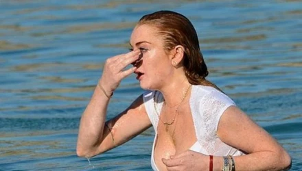 Λίντσεϊ Λόχαν: Βούτηξε στα νερά της Μυκόνου με δαντελένια λευκά εσώρουχα
