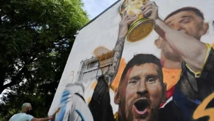Λιονέλ Μέσι: Η πρώτη τοιχογραφία αγκαλιά με το τρόπαιο του Παγκοσμίου Κυπέλλου