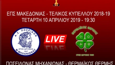 Η ORASI TV μας δίνει δυνατότητα να παρακολουθήσουμε ζωντανά τη μεγάλη μάχη μεταξύ του Ποσειδώνα Μηχανιώνας και του Θερμαϊκού Θέρμης (19.30) για τον 48ο τελικό Κυπέλλου της ΕΠΣΜ.