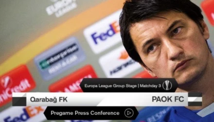 Παρακολουθείστε μέσω του PAOK TV τη συνέντευξη Τύπου των Βλάνταν Ίβιτς και Στέλιου Μαλεζά, μία ημέρα πριν τον αγώνα με την Καραμπάχ, για την 3η αγωνιστική της φάσης των ομίλων του Euopa League.