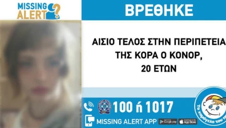 Εντοπίστηκε και είναι καλά στην υγεία της η 20χρονη Κόρα Ο Κόνορ, τα ίχνη της οποίας αγνοούνταν από τις 11 Μαΐου και για την εξαφάνισή της το «Χαμόγελο του Παιδιού» είχε εκδώσει «Missing Alert».