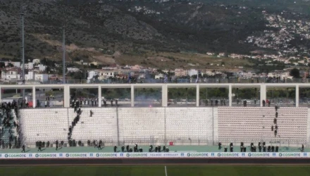 Η αστυνομία πιάστηκε στον ύπνο. Στον διάδρομο που βρίσκεται ψηλά πάνω από τις κερκίδες στην κεντρική θύρα απέναντι των επισήμων, οπαδοί των δυο ομάδων έδιναν σώμα με σώμα με την ΕΛ.ΑΣ να παρατηρεί επειδή πολύ απλά εκεί για να βρεθούν ΜΑΤ θα πρέπει να μπουν στις κερκίδες για να φτάσουν εκεί. Από θαύμα δεν έχουμε θύματα. Δείτε παρακάτω το βίντεο με τις συμπλοκές: