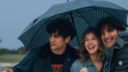 Σε μία από αυτές από αυτές είναι κάτω από μια ομπρέλα καθώς βρέχει και οι τρεις ηθοποιοί γελάνε και σε κάποιες άλλες φαίνονται οι δύο ηθοποιοί, που υποδύονται τα αδέλφια στη σειρά, καθώς ο Χριστόφορος Παπακαλιάτης είναι από πάνω τους και τους δίνει πιθανότατα κάποιες συμβουλές.
