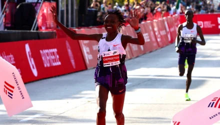 Η 30χρονη αθλήτρια από την Κένυα πέρασε τη γραμμή του τερματισμού σε 2:09:56 και μάλιστα, έτρεξε όλη τη διαδρομή σε ρυθμό κάτω από 2:10:00! Η επίδοση αυτή είναι νέο παγκόσμιο ρεκόρ και η Τσεπνγκετις έγινε η πρώτη γυναίκα που έσπασε το φράγμα του 2:10:00.