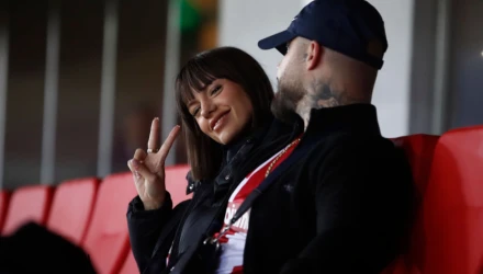 Φυσικά, μαζί της στις κερκίδες ήταν και ο Έλληνας σύντροφός της που είναι φίλαθλος των ερυθρολεύκων.