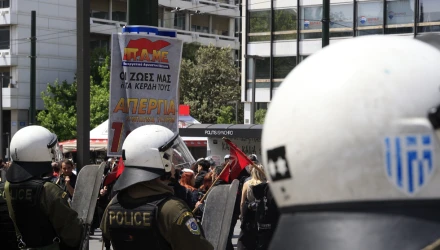 Χιλιάδες διαδηλωτές πραγματοποίησαν συγκέντρωση διαμαρτυρίας στο κέντρο της Αθήνας με κύριο αίτημα, την απελευθέρωση των ακτιβιστών, με αποτέλεσμα να αυξηθούν τα μέτρα γύρω από την πρεσβεία του Ισραήλ. Η κατάσταση αυτή προκάλεσε την αντίδραση ενός άνδρα των ΜΑΤ, ο οποίος ευχήθηκε το Ισραήλ να είχε βουλιάξει το πλοίο. «Το Ισραήλ φταίει που δεν βούλιαξε το πλοίο να τελειώνουμε… Και καθόμαστε τώρα μέσα στον καύσωνα, εδώ πέρα για τα λεφτά… Έπρεπε να το βουλιάξουν το μπουρδ@@@. Βγήκε το άλλο εκεί το λέσο να πούμε… Τρώει μόνο χόρτα», λέει.