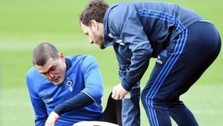 Στην προπόνηση της Τρίτης έπειτα από μια σύγκρουση, χρειάστηκε το ιατρικό τιμ του Αμβούργου, ενώ ίσως να κάνει και ράμματα πάνω από το αριστερό του φρύδι.