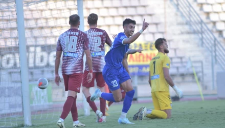 Οι «βυσσινί» προηγήθηκαν με τον Ηλιάδη στο 3΄, ενώ με προβολή του Παπαγεωργίου διπλασίασαν τα τέρματα τους στο 18΄. Η Νίκη Βόλου αντέδρασε και μείωσε σε 1-2 με τον Δούμτση στο 40΄.