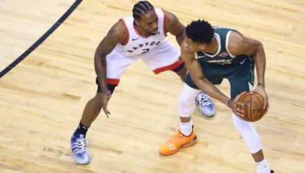 Με μπροστάρη τον Καουάι Λέοναρντ, που τελείωσε το ματς με 36 πόντους, 9 ριμπάουντ και 5 ασίστ σε 52 λεπτά συμμετοχής, οι «δεινόσυαροι» πήραν τη νίκη στον τρίτο τελικό της Ανατολής μειώνοντας τη σειρά σε 2-1.