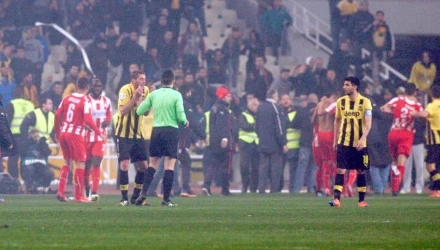 Δέχεται ότι ο αγώνας Κυπέλλου Ελλάδας ΑΕΚ-Ολυμπιακός στις 11/3 διακόπηκε από υπαιτιότητα της εγκαλουμένης ΠΑΕ και κατακυρώνει αυτόν υπέρ της αντίπαλης ομάδας με τέρματα 0-3.