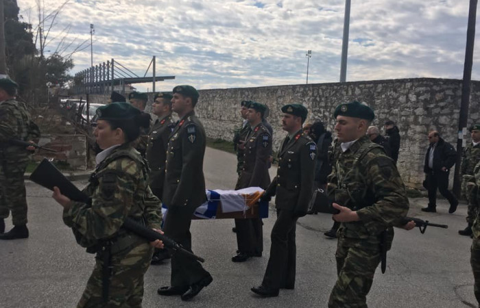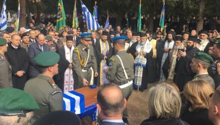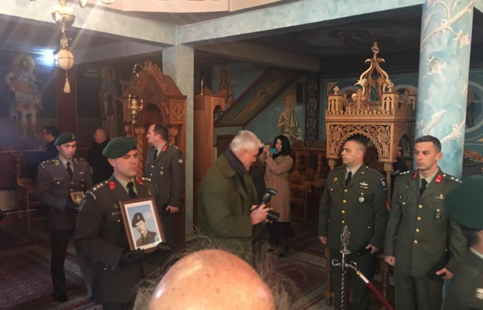 Στην εξόδιο ακολουθία στο Σιδηρόκαστρο Σερρών η οικογένεια, φίλοι και συμπολεμιστές, εκπρόσωποι της Πολιτείας, φορέων και συλλόγων, ο Πρεσβης της Κύπρου αλλα και πλήθος κόσμου, Έλληνες και αδερφοί Κύπριοι με συγκίνηση αποχαιρέτησαν τον Ήρωα.