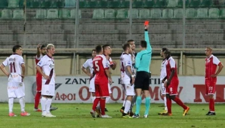 Σαν να μην έφτανε αυτό οι Θεσσαλοί έπαιζαν από το 43’ με 10 παίκτες λόγω της αποβολής του Ζίζιτς και από το 74ο λεπτό με 9 παίκτες λόγω κόκκινης κάρτας του Καρανίκα.