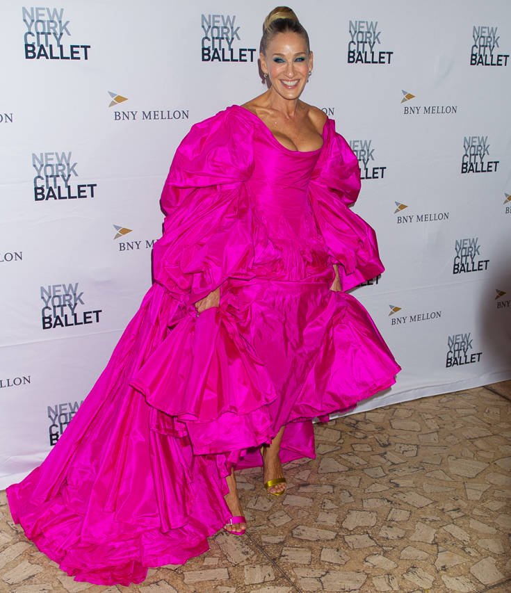 Η διάσημη σταρ τράβηξε τα φλας στο φθινοπωρινό γκαλά του Μπαλέτου, στο Lincoln Center, στη Νέα Υόρκη, όπου επέλεξε να φορέσει ένα φούξια φόρεμα το οποίο αποτελούνταν από έναν κορσέ που τόνιζε το μπούστο της και το συνδύασε με πανύψηλα πέδιλα διαφορετικού χρώματος.