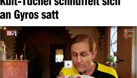 Συγκεκριμένα, Γερμανός κωμικός, που έχει μιμηθεί κατά καιρούς πολλούς πρωταγωνιστές του γερμανικού ποδοσφαίρου, όπως τον Μπεκενμπάουερ, τον Κλοπ, τον Γκουαρντιόλα, αυτή τη φορά μιμείται τον τεχνικό της Μπορούσια, Τόμας Τουχελ... Μεταξύ άλλων λέει διάφορες «αστείες» ατάκες, όπως ότι «έβγαλα τον Ρόις απο το παιχνίδι διότι έπρεπε να πάει για μάθημα στη σχολή οδηγών» (ο παίκτης της Μπορούσια στο παρελθόν είχε συλληφθεί χωρίς δίπλωμα οδήγησης), «δεν με ανησυχεί ο Λεβαντόφσκι. Αναλύσαμε τα ματς της Μπάγερν τα τελευταία 45 χρόνια και καταλήξαμε στο συμπέρασμα ότι πρέπει να προσέξουμε ιδιαίτερα τον Γκερντ Μιλερ», ενώ πετάει και σπόντα για τη Σάλκε και τον προπονητή της, Μπράιτενραϊτερ και για το καλύτερο ξεκίνημα στη Μπουντεσλίγκα των τελευταίων 15 ετών: «Και πέρσι ο Μπράιτενραϊτερ είχε ανάλογο ξεκίνημα... (εννοώντας με την Πάντερμπορν, που τελικά υπέστη καθίζηση στο δεύτερο γύρο και έπεσε στη Β' Εθνική).