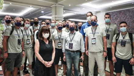 ? Η Ομάδα μας συναντήθηκε με την ΠτΔ πριν τη βραδινή προπόνησή της και δέχθηκε τις ευχές της, ενώ η κα Πρόεδρος είχε την ευκαιρία να συνομιλήσει για λίγο με τους διοικούντες της Ομάδας κ.κ. Κοντοτάσιο, Καρβέλα, τον προπονητή μας κ.Ζιάγκο και ορισμένους αθλητές. Την ευχαριστούμε για το ενδιαφέρον της και ευχόμαστε υγεία και δύναμη στα δύσκολα καθήκοντά της για τη Χώρα μας».