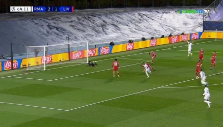Στο 65' ο Βραζιλιάνος χτύπησε για δεύτερη φορά και με σουτ έκανε το 3-1 για τη Ρεάλ με τον Άλισον να αντιδρά με καθυστέρηση.