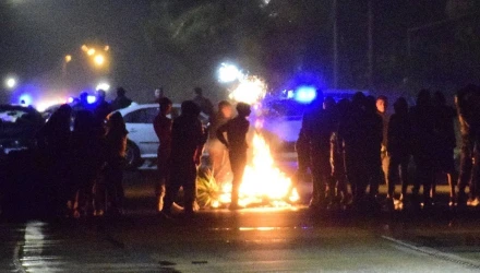 Οι συγκεντρωμένοι επιδόθηκαν σε πετροπόλεμο εναντίον των αστυνομικών δυνάμεων, έκαψαν λάστιχα και διέκοψαν την κυκλοφορία των οχημάτων στην παλαιά εθνική Αθηνών-Κορίνθου, και στα δύο ρεύματα, στο ύψος των Μεγάρων.