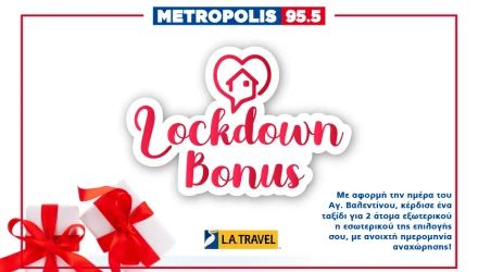 «Mε αφορμή την ημέρα του Αγ.Βαλεντίνου, συντονίσου καθημερινά με το Metropolis 955 και μόλις οι παραγωγοί δώσουν το σύνθημα «Κέρδισε ένα ταξίδι για 2 άτομα, εξωτερικού η εσωτερικού με ανοιχτή ημερομηνία αναχώρησης, της επιλογής σου» σε ανύποπτο χρόνο, έχεις 5 λεπτά στην διάθεση σου για να καλέσεις στο 2310909090,για να δηλώσεις συμμετοχή, να μπεις στην κλήρωση και να κερδίσεις ένα ταξίδι για 2 άτομα, αξίας 1200 ευρώ με ανοιχτή ημερομηνία αναχώρησης, της επιλογής σου»!