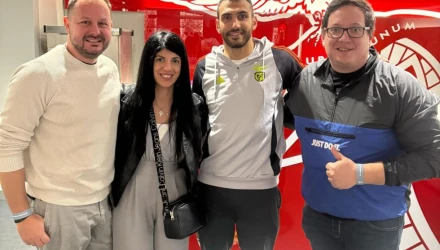 Αμέσως μετά τη λήξη του ματς και τη νίκη επί της Μποαβίστα συνάντησε και τον Έλληνα διεθνή επιθετικό (ο οποίος είχε προλάβει λίγο νωρίτερα να περάσει στον αγωνιστικό χώρο ως αλλαγή και να πετύχει στο 70' το 2-0).