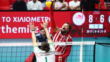 ΟΛΥΜΠΙΑΚΟΣ (Ντανιέλ Καστελάνι): Στερν 12 (8/19 επ., 3 άσσοι, 1 μπλοκ), Γκουσταβάο 9 (4/6 επ., 1 άσσος, 4 μπλοκ), Κουμεντάκης 7 (4/13 επ., 3άσσοι, 21% υπ. - 14% άριστες), Τράβιτσα 4 (1 άσσος, 3 μπλοκ), Τζούριτς 10 (5/8 επ., 4 άσσοι, 1 μπλοκ), Ιντάλγκο 15 (11/20 επ., 3 άσσοι, 1 μπλοκ, 37% υπ. - 26% άριστες) / Τζιάβρας (λ., 29% υπ. - 21% άριστες).