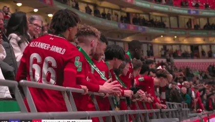 O τηλεοπτικός φακός έπιασε τον Κώστα Τσιμίκα να φτύνει την τσίχλα του κατά την απονομή του League Cup σε χαμηλότερο διάζωμα του «Γουέμπλεϊ» με τη Λίβερπουλ να του κάνει παρατήρηση και τον διεθνή μπακ να απολογείται.
