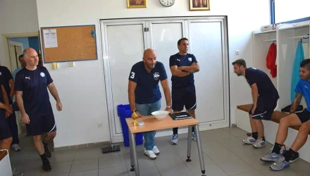 Ο Παύλος Μυροφορίδης μίλησε στους ποδοσφαιριστές της ομάδας στα αποδυτήρια πριν τη χθεσινή προπόνηση.