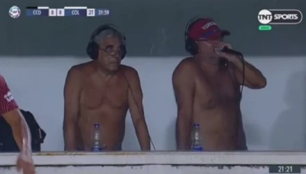 Το περιστατικό συνέβη στην Αργεντινή και στην αναμέτρηση της Σεντράλ Κόρδοβα απέναντι στην Κολόν Σάντα Φε. Οι δύο εκφωνητές δεν άντεξαν τις πολύ υψηλές θερμοκρασίες και έβγαλαν τις μπλούζες τους προκειμένου να κάνουν λιγότερο ανυπόφορα τη δουλειά τους.