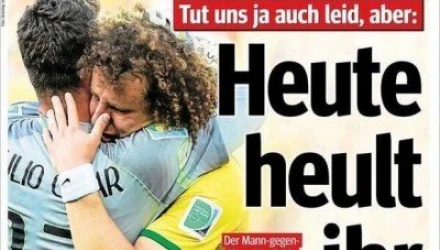 Συγκεκριμένα, η τοπική εφημερίδα του Αμβούργου «Morgen Post» έχει τον ιδιαίτερα προκλητικό τίτλο «Σήμερα θα κλάψετε ξανά», o οποίος συνοδεύεται μία φωτογραφία με τους Ζούλιο Σέζαρ και Νταβίντ Λουίζ να κλαίνε αγκαλιασμένοι μετά από την πρόκριση της Βραζιλίας στους «8» εις βάρος της Κολομβίας.