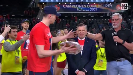 Η Μπασκόνια έγραψε ιστορία κερδίζοντας για 7η φορά το Κύπελλο στην Ισπανία, επικρατώντας 89-100 της Ρεάλ Μαδρίτης. Στους πανηγυρισμούς που ακολούθησαν… θύμα τουρτοπόλεμου έπεσε ο προπονητής των Βάσκων, Πάολο Γκαλμπιάτι!