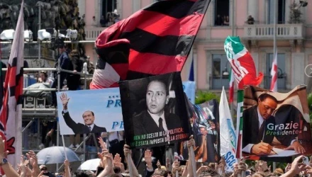 Οι υποστηρικτές του είχαν συγκεντρωθεί από νωρίς στην πλατεία του καθεδρικού ναού, πριν το φέρετρο του Μπερλουσκόνι μπει ξανά στη νεκροφόρα. Το φέρετρο συνόδευαν τα μέλη της οικογένειάς του.