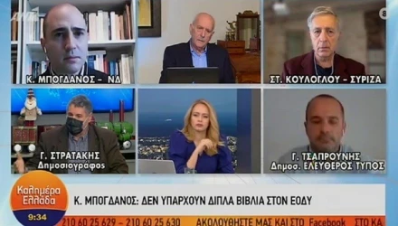 Ένταση προκλήθηκε ανάμεσα στον Κωνσταντίνο Μπογδάνο και τον γνωστό δημοσιογράφο, Γιάννη Στρατάκη, ο οποίος τόνισε πως ο Κυριάκος Μητσοτάκης, παραβίασε τα μέτρα για τον περιορισμό του κορωνοϊού. «Τι παραβίασε; Ποδήλατο κάνεις χωρίς μάσκα», είπε και εκεί δέχθηκε την ερώτηση «τι μήνυμα έστειλε για να πάει στην Πάρνηθα;». Ο Κωνσταντίνος Μπογδάνος, πήρε θέση λέγοντας ότι: «Κύριε Στρατάκη δεν παραλογίζεστε απλά, γελοιοποιείται την ιδιότητά σας. Όταν ρωτάτε τι νούμερο έστειλε ο Πρωθυπουργός για να πάει στην Πάρνηθα, γελοιοποιείται την ιδιότητά σας, δεν ντρέπεστε που λέγεστε δημοσιογράφος;»