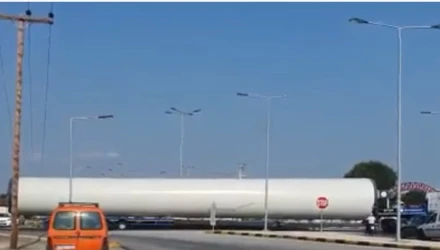 Κυκλοφοριακές ρυθμίσεις στο οδικό δίκτυο στα Τρίκαλα προκειμένου να διέλθουν τα φορτηγά που μεταφέρουν γιγάντια εξαρτήματα ανεμογεννητριών.