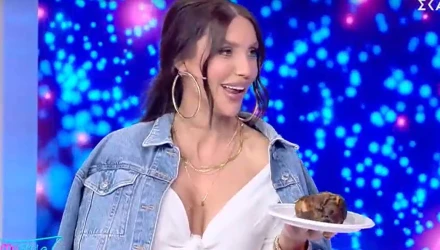Μετά την πασαρέλα της, η παίκτρια αιφνιδίασε την Κατερίνα Καραβάτου, με το πιάτο που κρατούσε.