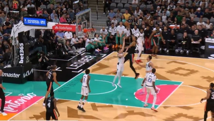 Οι Σπερς έτρεξαν το γήπεδο με τον ίδιο τον Ουεμπανιάμα να κατεβάζει την μπάλα και να φτάνει στο αντίπαλο καλάθι coast to coast. Η άμυνα των Μάβερικς άνοιξε και στο κέντρο για να υπερασπιστεί το καλάθι της ομάδας του βρέθηκε ο Τζον Πουλακίδας. Ο ομογενής γκαρντ λειτουργώντας με το ένστικτό του, σηκώθηκε να ανακόψει τον αντίπαλο, προσπάθησε να σταματήσει τον Βίκτορ Ουεμπανιάμα, όμως γρήγορα κατάλαβε πως αυτό ήταν αδύνατο. Ο Γάλλος πέραν του ύψους του είχε αποκτήσει ήδη ταχύτητα, πάτησε καλά και πρόσφερε ένα εντυπωσιακό κάρφωμα στη χθεσινή του 40αρα, στη νίκη της ομάδας του με 139-120.
