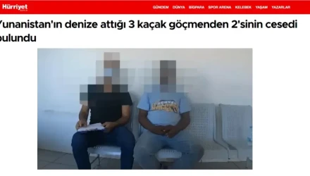 «Εντοπίστηκαν οι σωροί δύο από τους τρεις παράνομους μετανάστες που πέταξε στη θάλασσα η Ελλάδα» γράφει προκλητικά το δημοσίευμα, κατηγορώντας το ελληνικό Λιμενικό Σώμα πως «πέταξε» στη θάλασσά τους τρεις μετανάστες, από τους οποίους ένας κατάφερε να φτάσει κολυμπώντας στα τουρκικά παράλια.