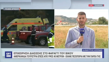 Η 25χρονη Αμερικανίδα την ώρα που έκανε πεζοπορία με την παρέα της στο φαράγγι του Βίκου έπεσε από ύψος 40 μέτρων, τραυματίστηκε σοβαρά χάνοντας τελικά τη ζωή της. Αμεσα υπήρξε μεγάλη κινητοποίηση και από την Πολιτική Προστασία και την Πυροσβεστική ζητήθηκε ελικόπτερο για την μεταφορά της το οποίο ξεκίνησε στις 13.00 από την Ελευσίνα.