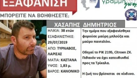 Νεκρός ο 38χρονος αγνοούμενος από τον Τύρναβο
