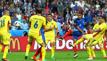 Ανώτερη σχεδόν σε όλο το πρώτο ημίχρονο ήταν η ομάδα του Ντιντιέ Ντεσάμπ χάνοντας τρεις κλασσικές ευκαιρίες με τους Γκριζμάν και Ζιρού. Η πρώτη ευκαιρία του αγώνα όμως ήταν για την Ρουμανία με τον Στάνκου.