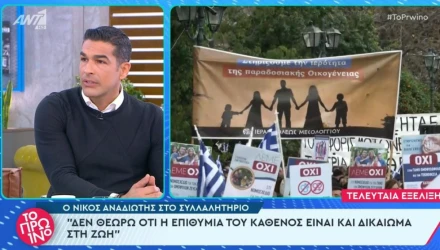 Ο ηθοποιός εμφανίστηκε στη συγκέντρωση στο Σύνταγμα έπειτα από κάλεσμα της «Εστίας Πατερικών Μελετών» και σχετικό βίντεο προβλήθηκε και στην εκπομπή «Πρωινό», όπου βρέθηκε καλεσμένος ο Νίκος Αναδιώτης το πρωί της Δευτέρας 12/2.