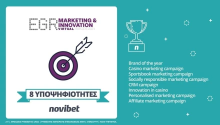 Οκτώ υποψηφιότητες απέσπασε η Novibet στα κορυφαία διεθνή βραβεία EGR Marketing & Innovation Awards 2021, ξεχωρίζοντας για τις καινοτόμες Marketing ενέργειες που έχει υλοποιήσει τους τελευταίους δώδεκα μήνες.