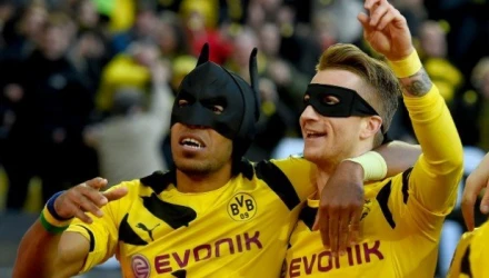 Batman ο Ομπαμπεγιάνγκ, Ρόμπιν ο Ρόις! Αυτό είναι το... στόρι του γκολ που έλυσε το γόρδιο δεσμό για τη Ντόρτμουντ απέναντι στη Σάλκε (προτού γίνει το τελικό 3-0). Με το που ο πρώτος χρίστηκε σκόρερ έβγαλε τη... μάσκα του και πόζαρε μαζί με τον Γερμανό άσο που είχε... βοηθητικό χαρακτήρα (όπως και ο υπερ-ήρωας που «υποδύθηκε»).
