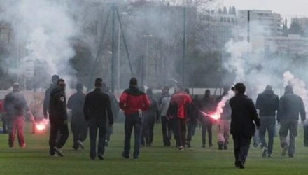 Λίγο πριν την αναμέτρηση της Νις με τη Λιόν, οι οπαδοί των «αετών» εισέβαλλαν στην προπόνηση της ομάδας τους, όπου υπήρξαν επεισόδια με τους παίκτες!