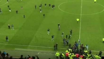 Οι φίλοι των γηπεδούχων μη μπορώντας να αντέξουν την ήττα, εισέβαλαν στο γήπεδο και άρχισαν να κυνηγούν τους παίκτες της ομάδας, που γλίτωσαν τρέχοντας κακήν κακώς προς τα αποδυτήρια.