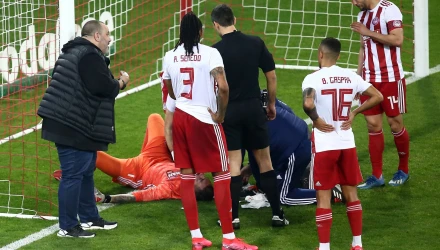 Ο Μουνιέ στην προσπάθειά του να πετύχει γκολ, τραυμάτισε σοβαρά τον γκολκίπερ του Ολυμπιακού, Ζορζέ Σα.