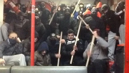 Οι δύο ποδοσφαιριστές του Ολυμπιακού βρέθηκαν στην κοπή της πίτας του συνδέσμου φίλων της ομάδας τους στην Ηλιούπολη και συμμετείχαν σε φωτογραφικά ενσταντανέ που δεν τους τιμούν καθόλου. Οι θερμόαιμοι οπαδοί των ερυθρόλευκων έχοντας στιλάρια και πυρσούς στα χέρια και full face πόζαραν μαζί με τα ινδάλματά τους ενώ ο Ντομίνγκες σε ένα στιγμιότυπο περιεργάζεται τα... όπλα τους.