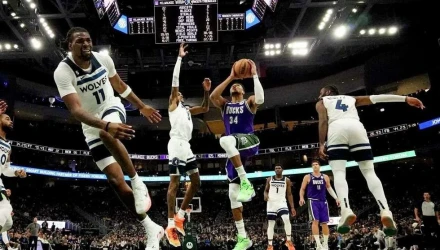 Τα «ελάφια» επιβλήθηκαν των Τίμπεργουλφς με 123-114 με τον Έλληνα σούπερ σταρ να σημειώνει ένα τρομερό double-double με 43 πόντους και 20 ριμπάουντ. Μάλιστα έκανε το πρώτο back to back με 40+ πόντους, 20+ ριμπάουντ και 5+ ασίστ, μετά τον Ουίλτ Τσάμπερλεϊν που είχε γράψει ανάλογη επίδοση στο μακρινό 1966. Μόνο τρεις παίκτες στην ιστορία είχαν διαδοχικά παιχνίδια με τέτοιες επιδόσεις, ο Γιάννης, ο Τσάμπερλεϊν με πέντε τέτοια σερί δύο αγώνων και ο Έλτζι Μπέιλορ με ένα σερί τεσσάρων αγώνων.